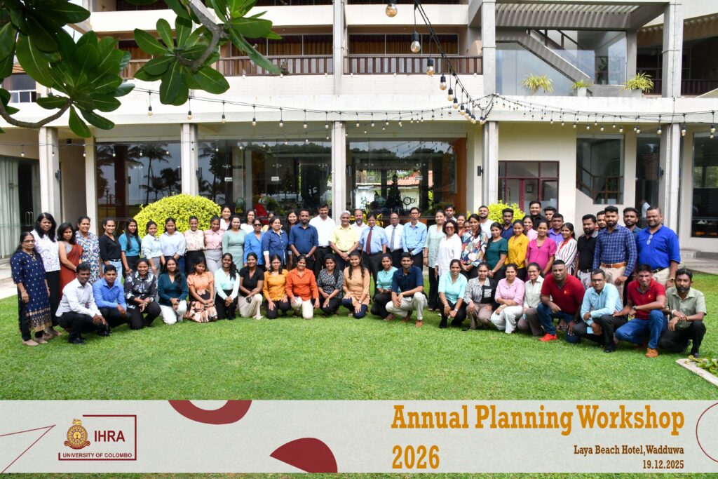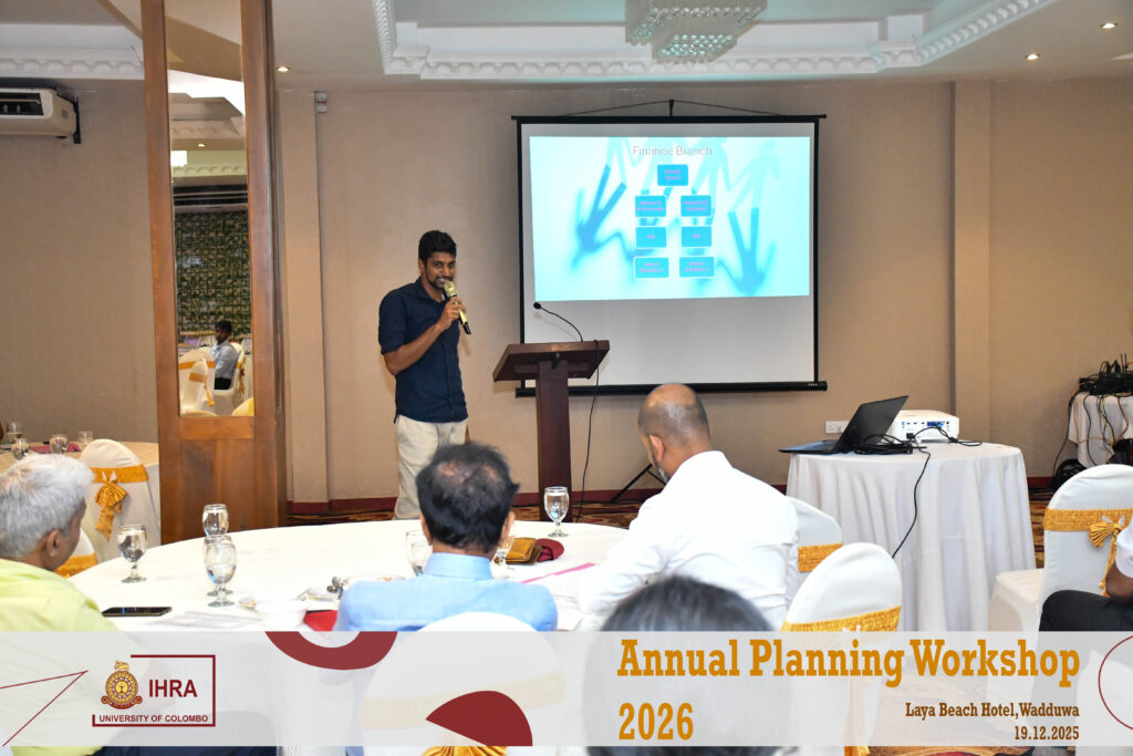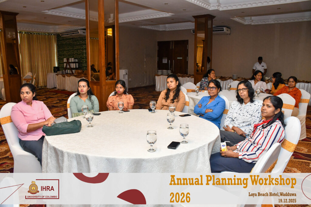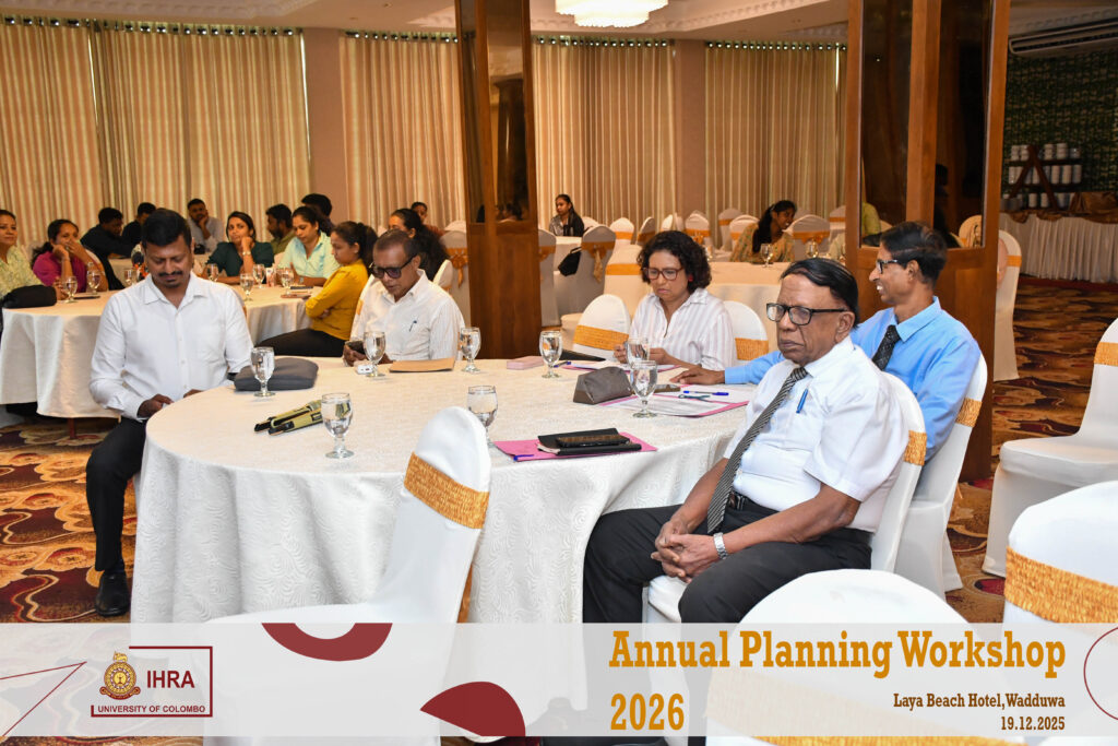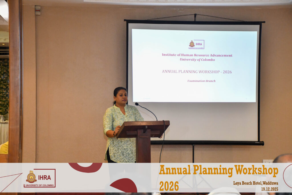 The Institute of Human Resource Advancement (IHRA), University of Colombo successfully conducted its Annual Planning Workshop for the year 2026 on 19th December 2025 at the Laya Beach Hotel, Wadduwa, from 9.30 a.m. to 5.00 p.m.