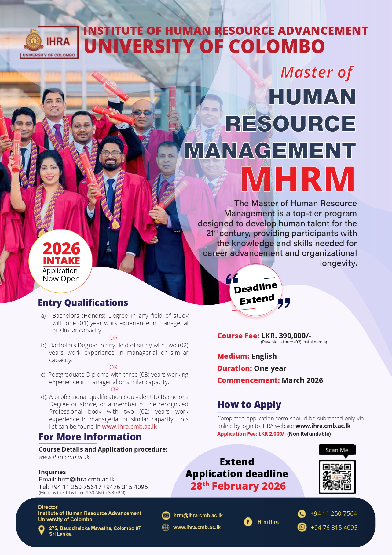 Application Calling for Master of Human Resource Management (MHRM) – Intake 2026by Ashani PereraSeptember 23, 2025March 5, 2026 Apply Online