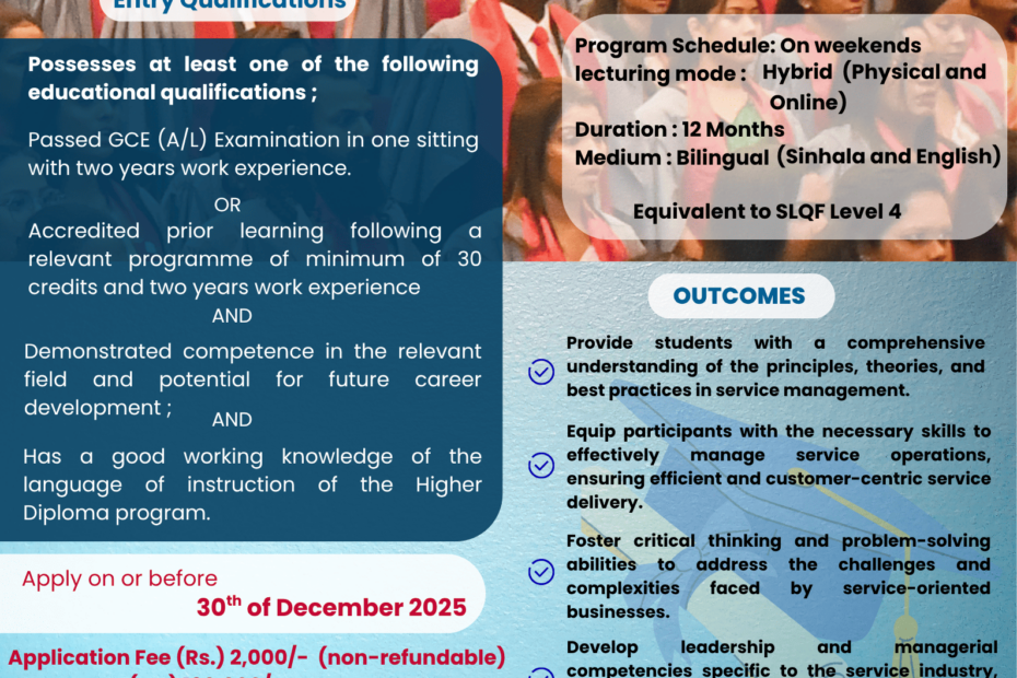 Application Calling for Higher Diploma in Service Management (HDSM) – Intake 2026