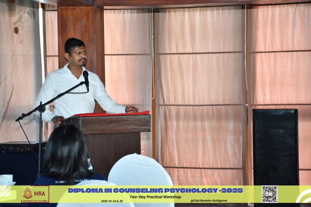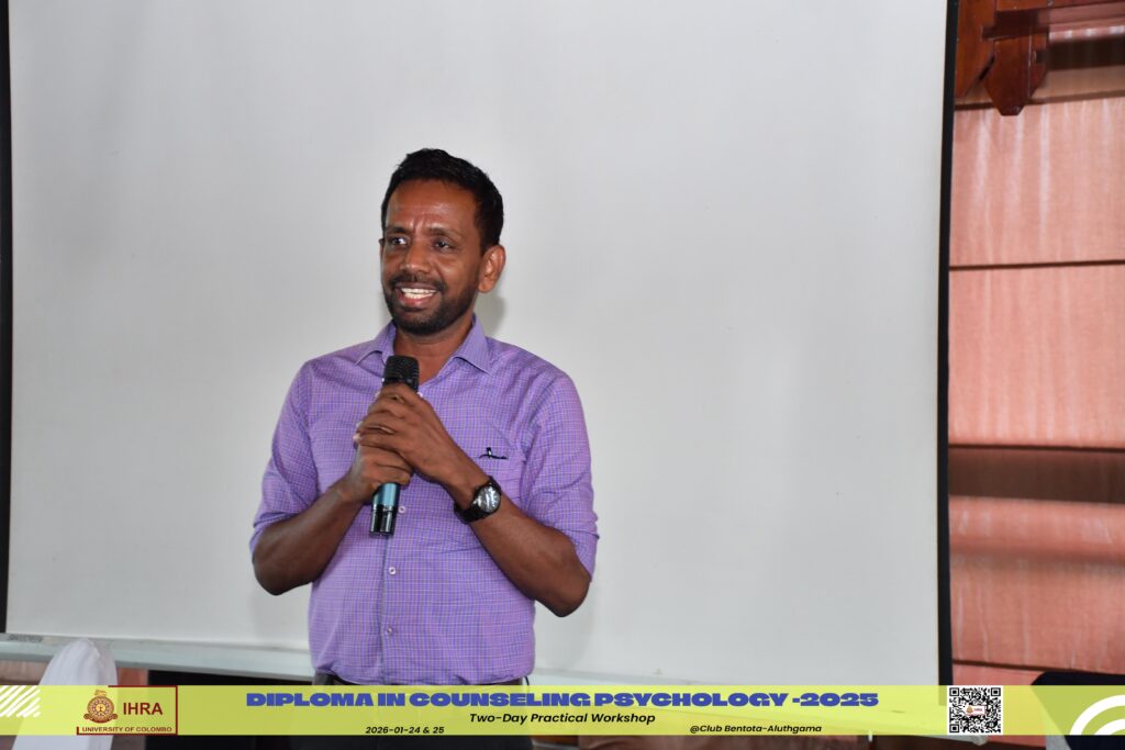 Under the guidance of Programme Coordinator Prof. W. S. Chandrasekara, the workshop was designed to deliver high-quality practical training aligned with professional standards in counseling psychology. The sessions were facilitated by distinguished resource persons, Mrs. Wishmika De Silva (Clinical Psychologist) and Dr. Wijayantha Ukwatte (Senior Lecturer, IHRA, UoC), who shared their extensive clinical and academic expertise.