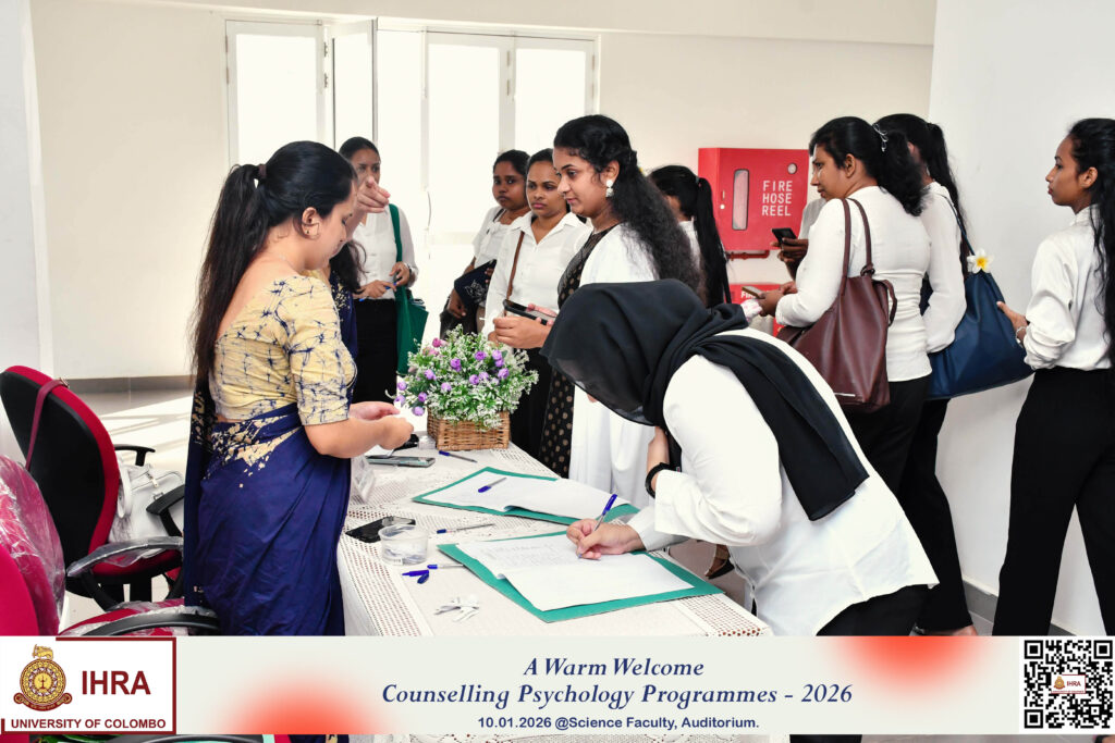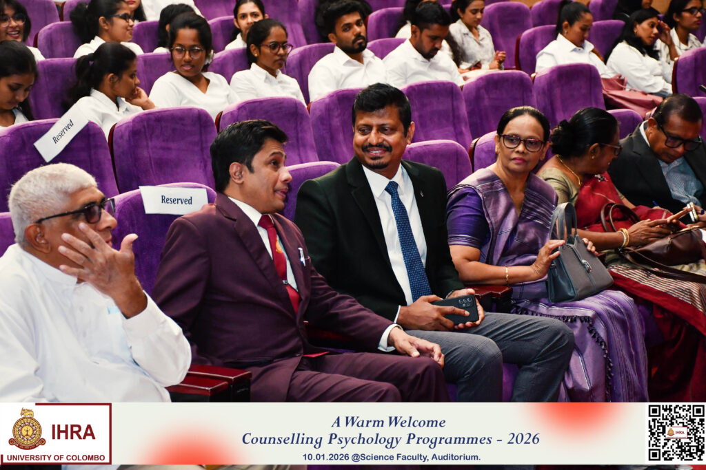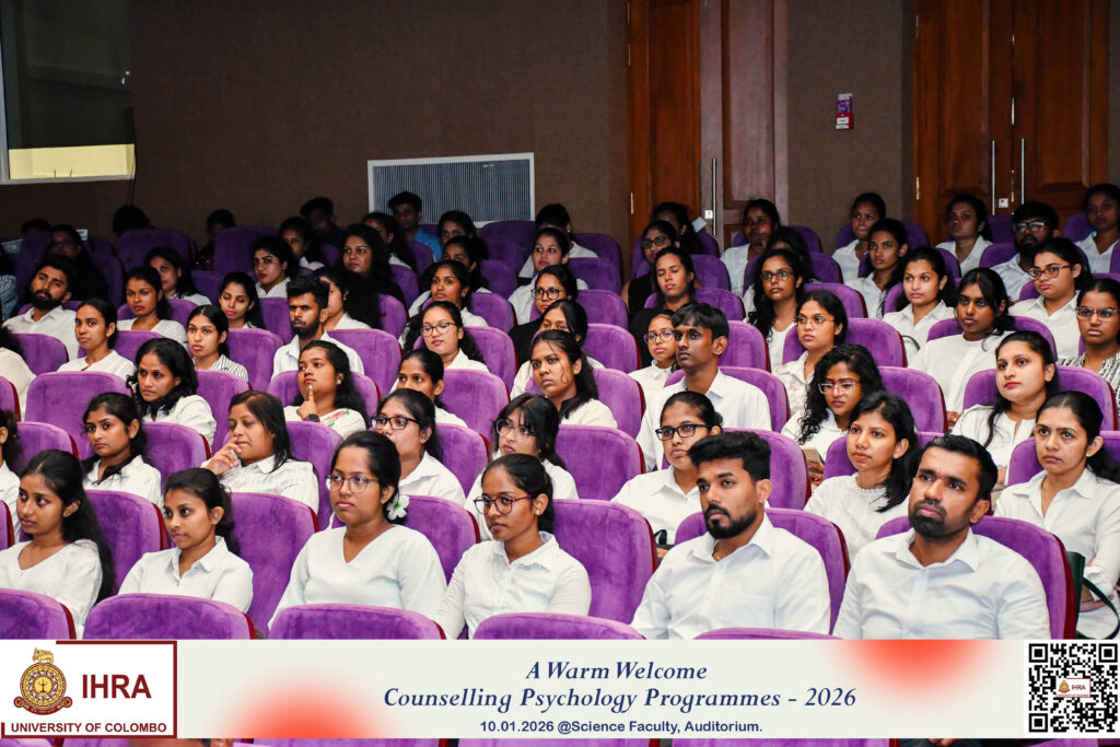 The Institute of Human Resource Advancement (IHRA), University of Colombo, successfully inaugurated the Counselling Psychology programs – 2026 on Saturday, 10th January 2026, at the Faculty of Science Auditorium, University of Colombo, from 9.00 a.m. to 12.00 noon.