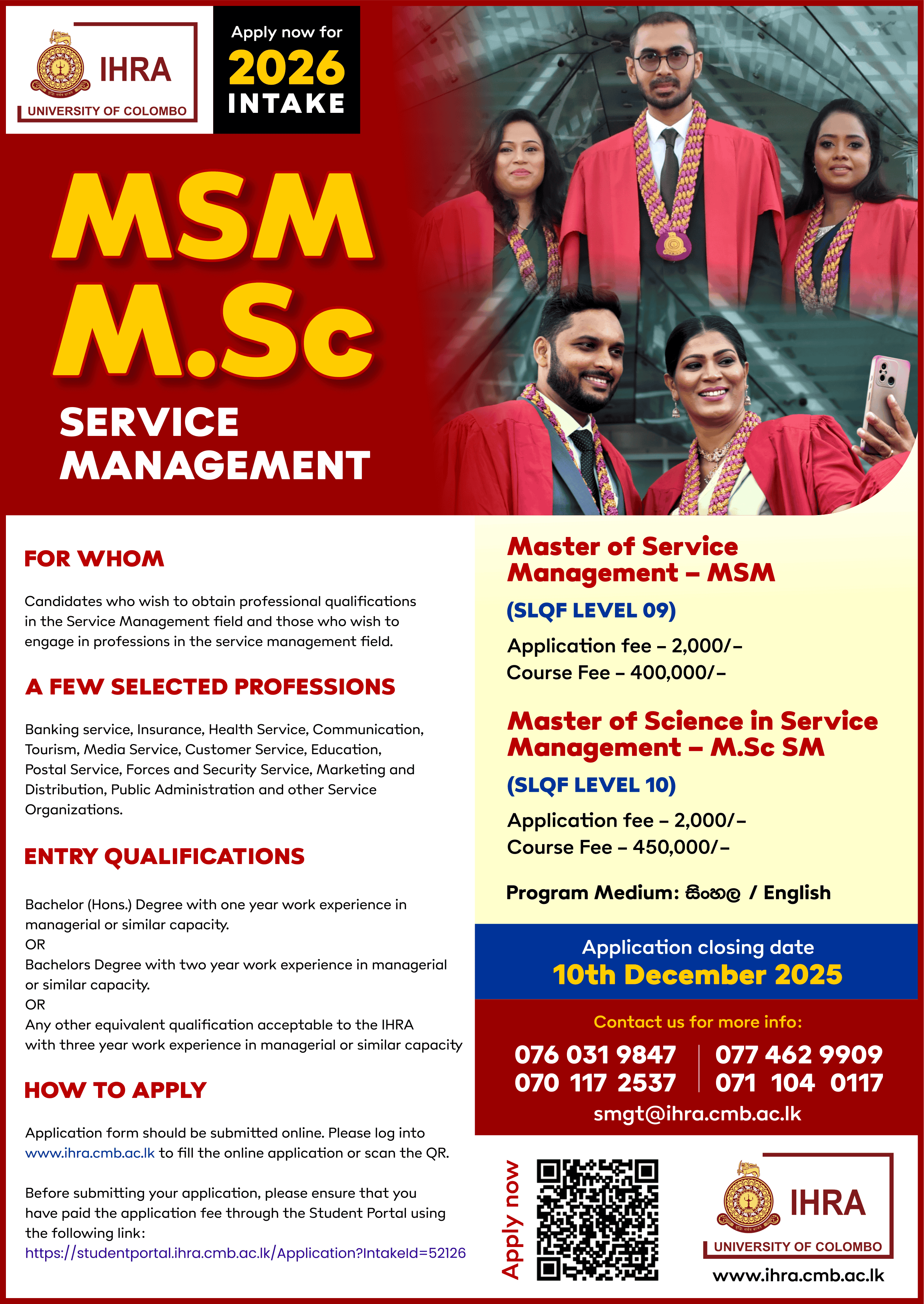 Application Calling for Master in Service Management (MSM) & Master of Science in Service Management (MSc.SM) Programs – Intake 2026by Web AdminNovember 20, 2025November 20, 2025 Online Payment Apply Online