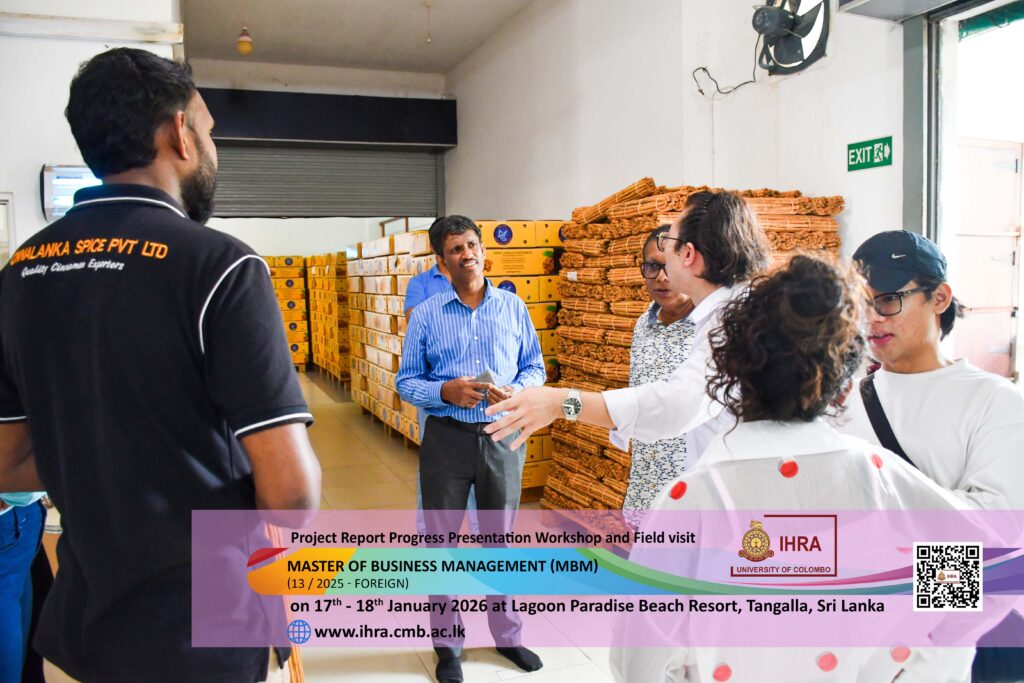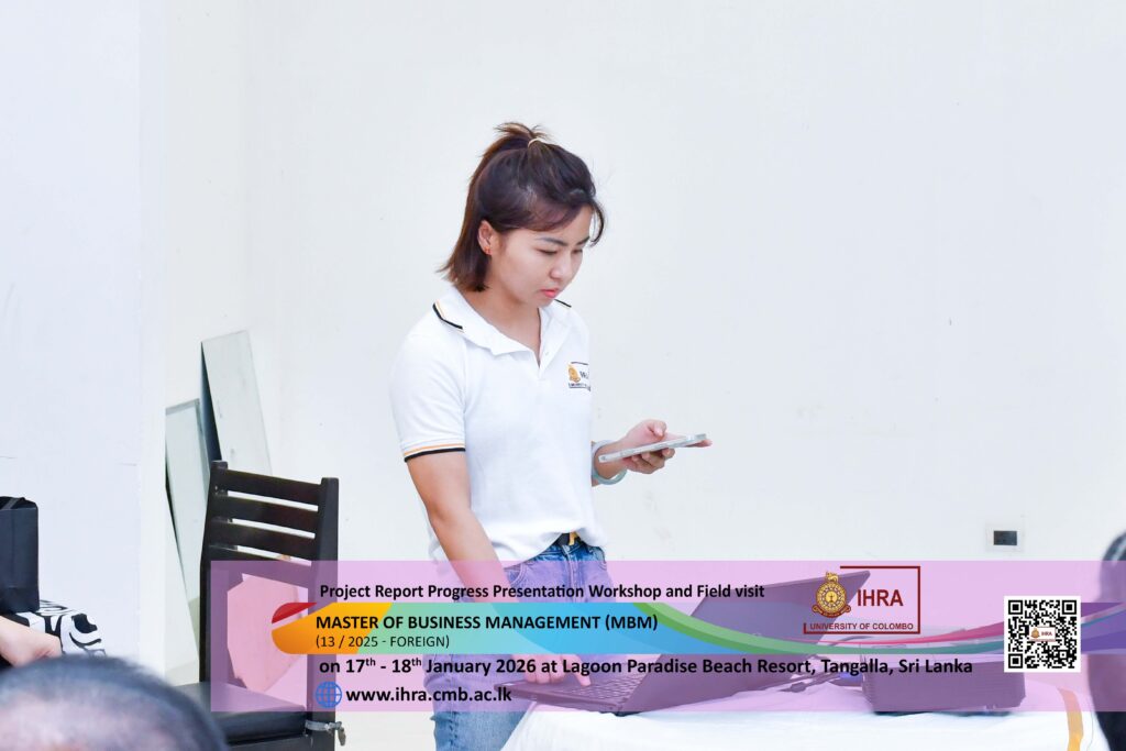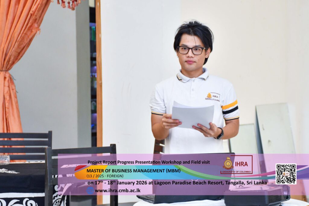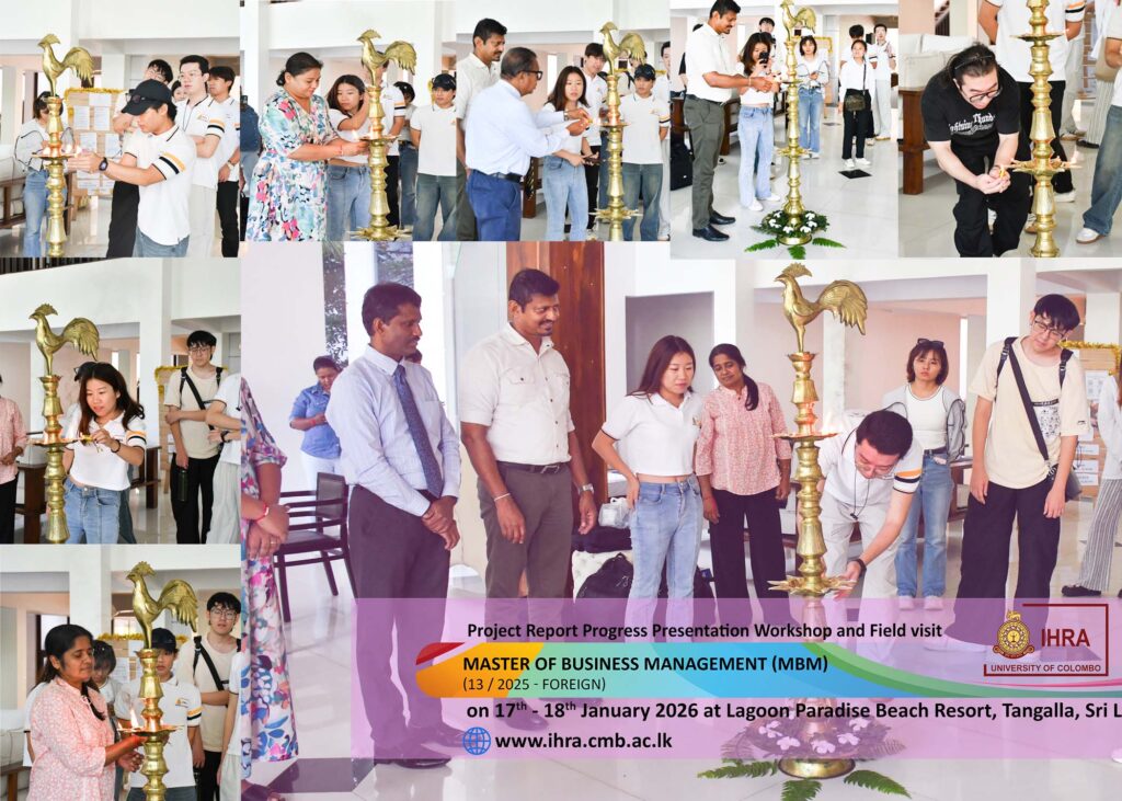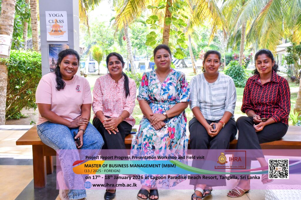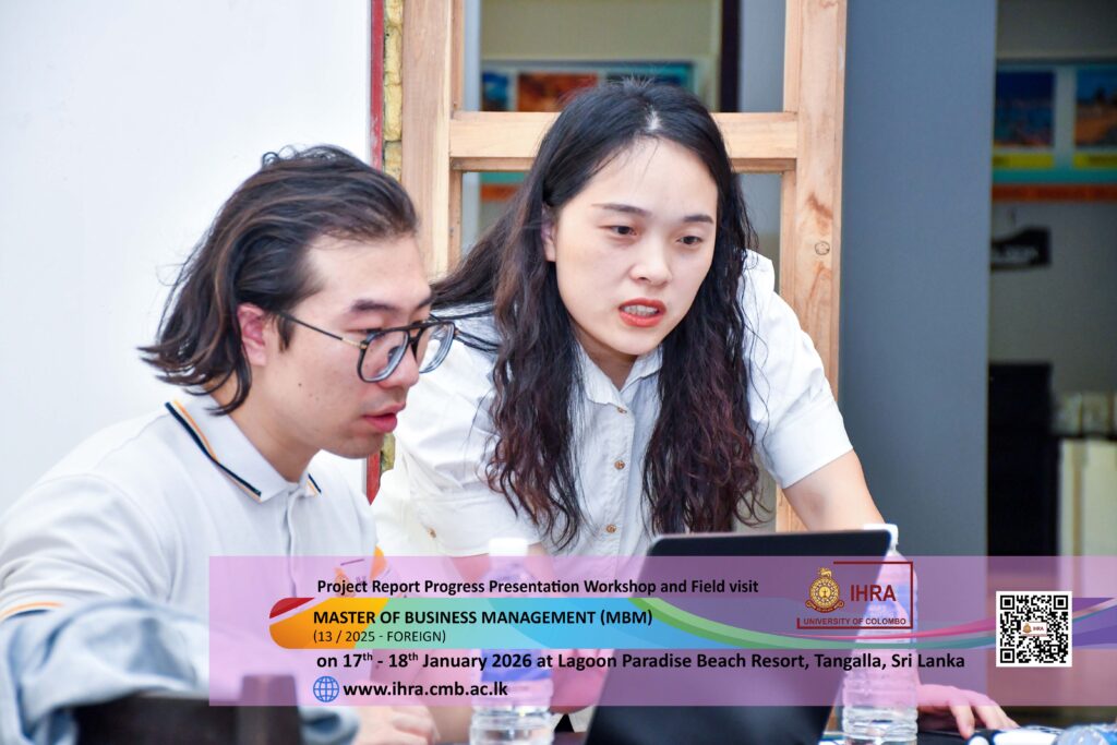 The Institute of Human Resource Advancement (IHRA), University of Colombo successfully conducted the Project Report Progress Presentation Workshop and Field Visit for the Master of Business Management (MBM) Batch 13 (2024/2025 β Foreign Students) on 17th and 18th January 2026 at the Lagoon Paradise Beach Resort, Tangalle.