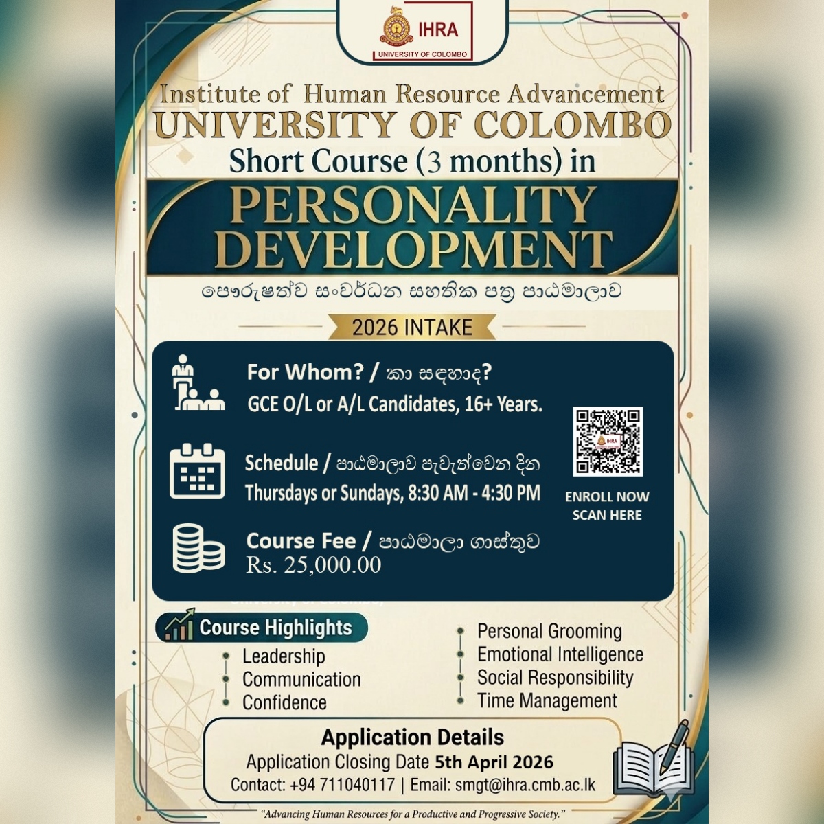 Email: smgt@ihra.cmb.ac.lk