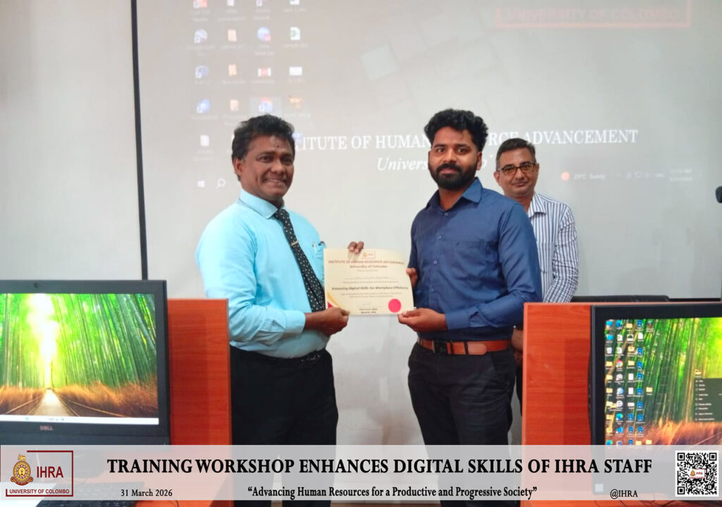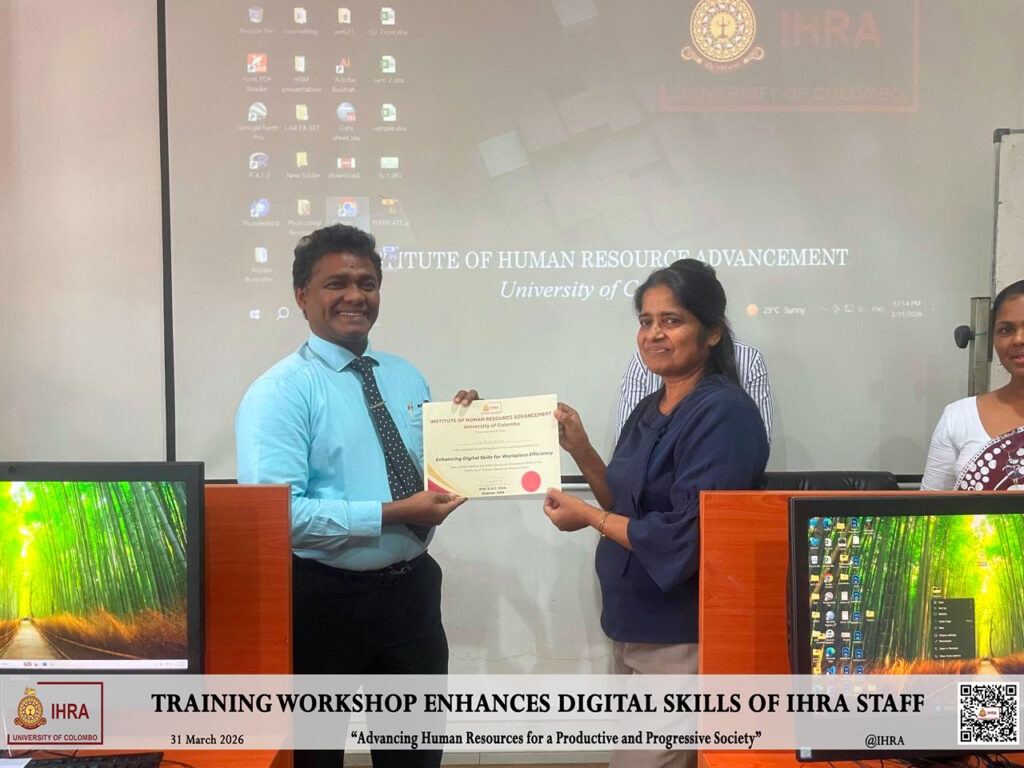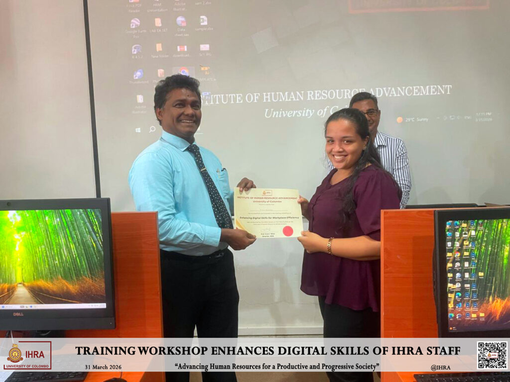 The Institute of Human Resource Advancement (IHRA) conducted a training workshop titled “Enhancing Digital Skills for Workplace Efficiency” on 31st March 2026 at the IHRA Computer Lab.